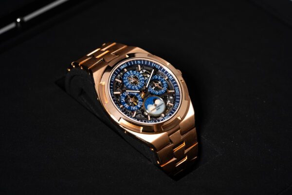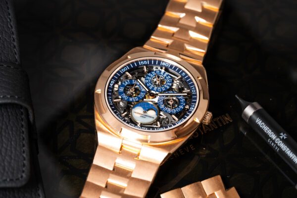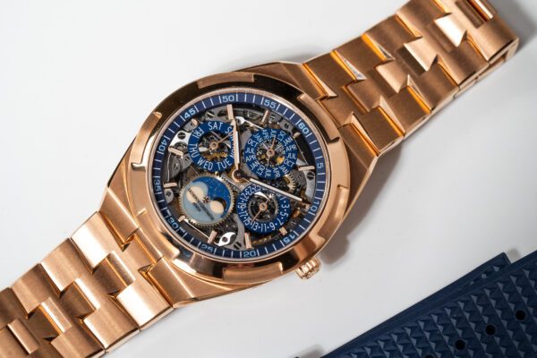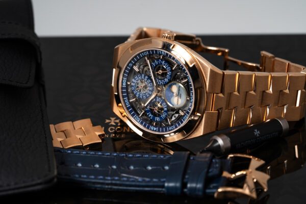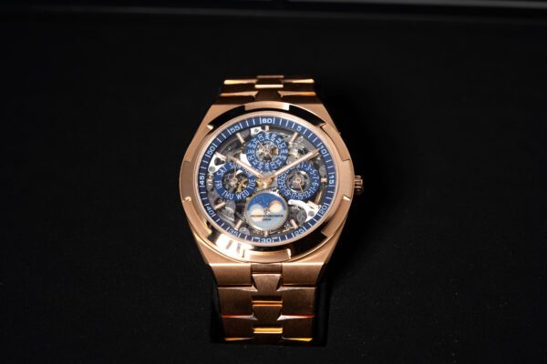 An incredible Vacheron Constantin Overseas perpetual calendar complication in rose gold. Full set new unworn